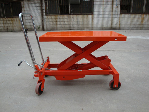 腳踏式液壓升降平臺車由兩部分組成:機構(gòu)本體和液壓系統(tǒng)。升降的操作控制是由一套液壓系統(tǒng)和液壓缸來完成的,而組合而成的液壓系統(tǒng)全部放在液壓油泵中。液壓泵和液壓缸都采用標準件,其中液壓缸為單作用液壓缸,液壓泵為腳踏式,通過腳踩腳踏式液壓泵提起貨物,要求后輪固定,設(shè)置過載安全閥,確保操作者安全,剎車安全可靠,可在升程內(nèi)任意位置停止升降。
