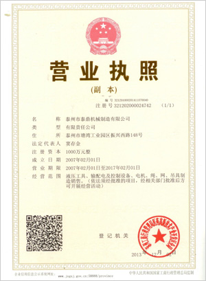 泰州市泰鼎機械制造有限公司塑造企業(yè)品牌之初,就把質(zhì)量視為生命,將信譽作為基石。經(jīng)過近20年的不懈努力,已被業(yè)內(nèi)公認為信譽卓著的企業(yè)。