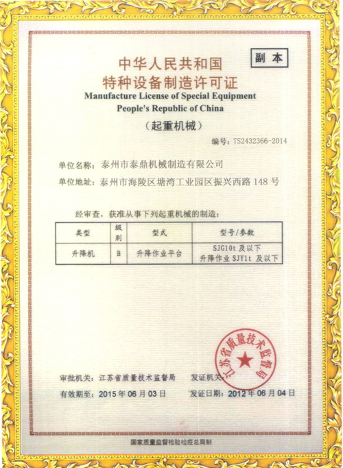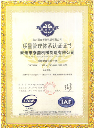 ☆ 質(zhì)量體系管理認證 ☆ 特種設備許可證